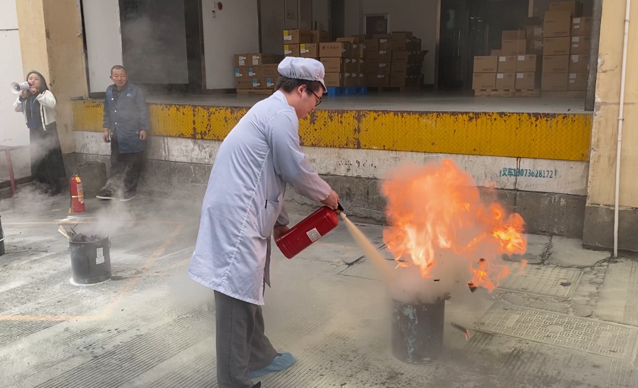 員工們?cè)谕瓿蓪W(xué)習(xí)、掌握滅火器的使用技能后,紛紛上前進(jìn)行演示。