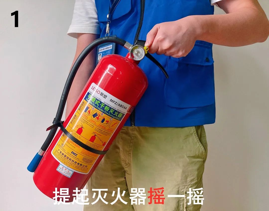在錢隊(duì)長(zhǎng)的細(xì)心指導(dǎo)下,大家學(xué)習(xí)并掌握了滅火器的正確使用方式,牢牢記住了滅火器使用的四字訣“搖、拉、握、壓”。